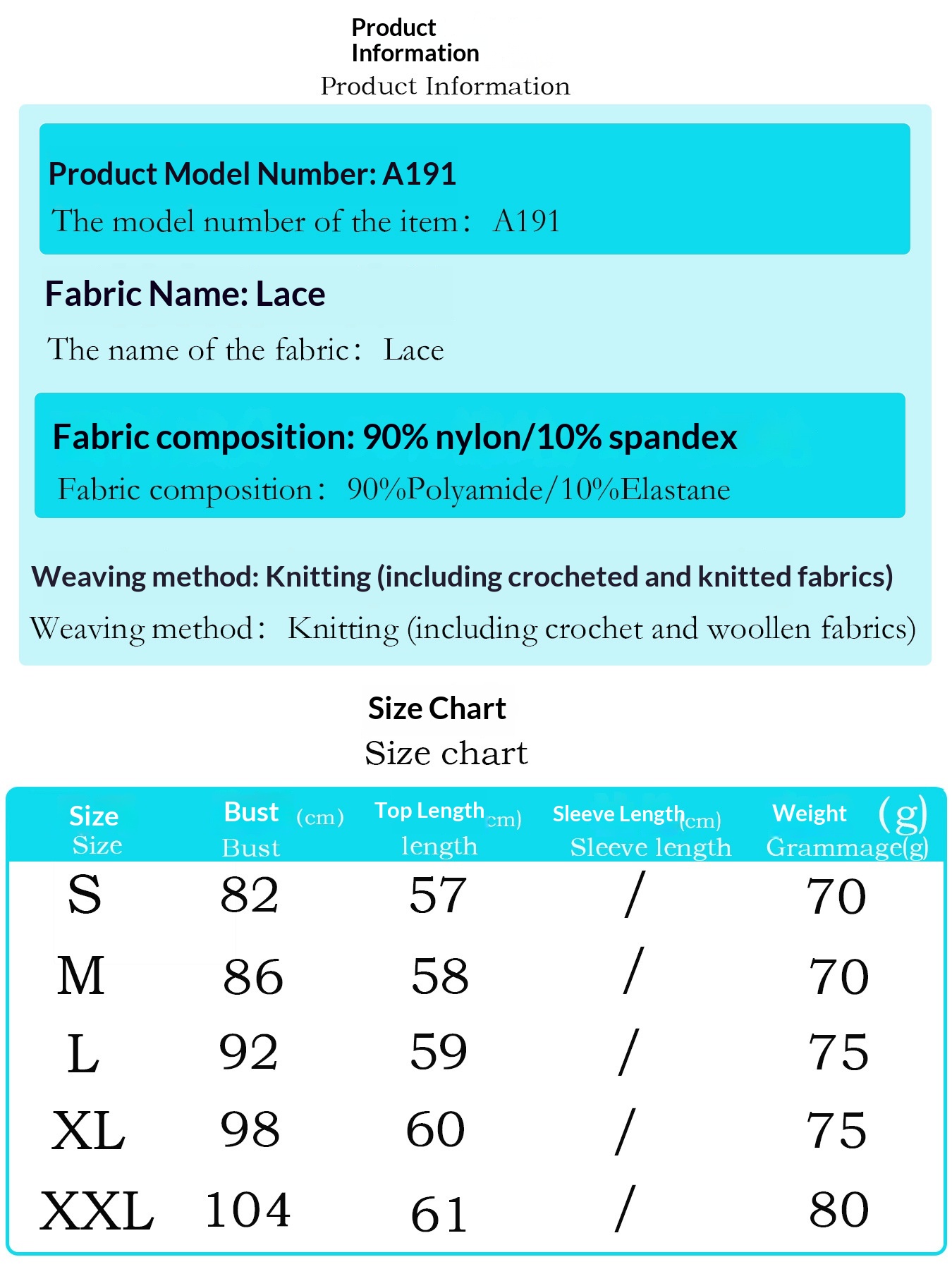 Sizes: S, M, L, XL, XXL